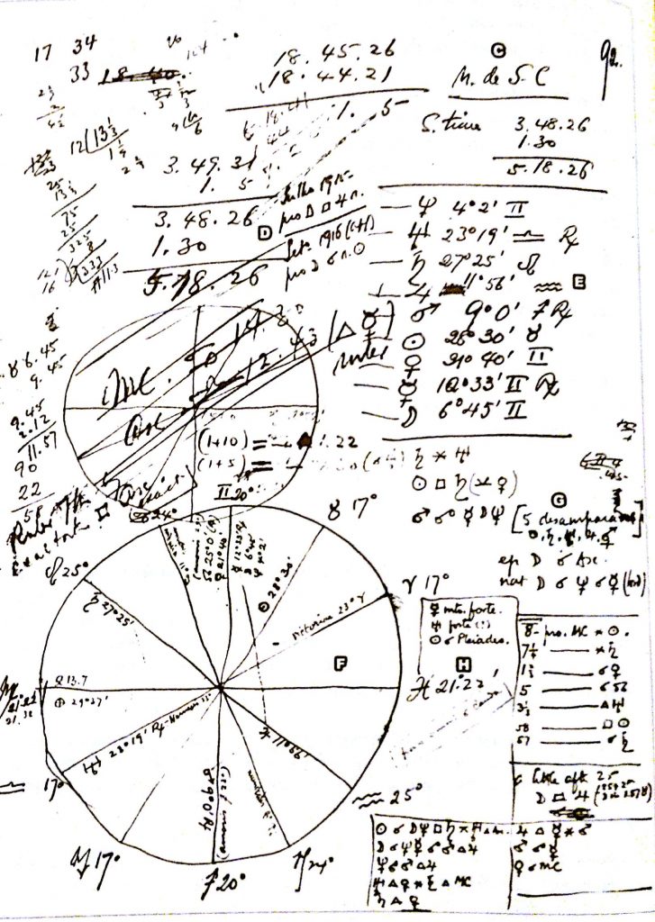 .......................O poeta, recorrendo a personagens históricas ou contemporâneas, fez mais de 1500 mapas astrais. Ousou também calcular o ano da sua própria morte e a verdade é que houve grande proximidade entre a data estimada e a real.